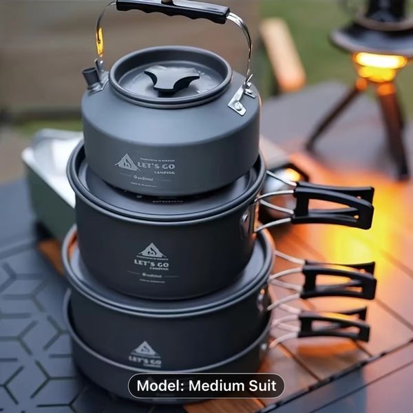 Portable Camping Cookware Set | Aluminum Alloy Cooking Pots, Kettle, Frying Pan, Soup Pot with Storage Bag and Outdoor Camping Accessories - Ideal for Backpacking Gear